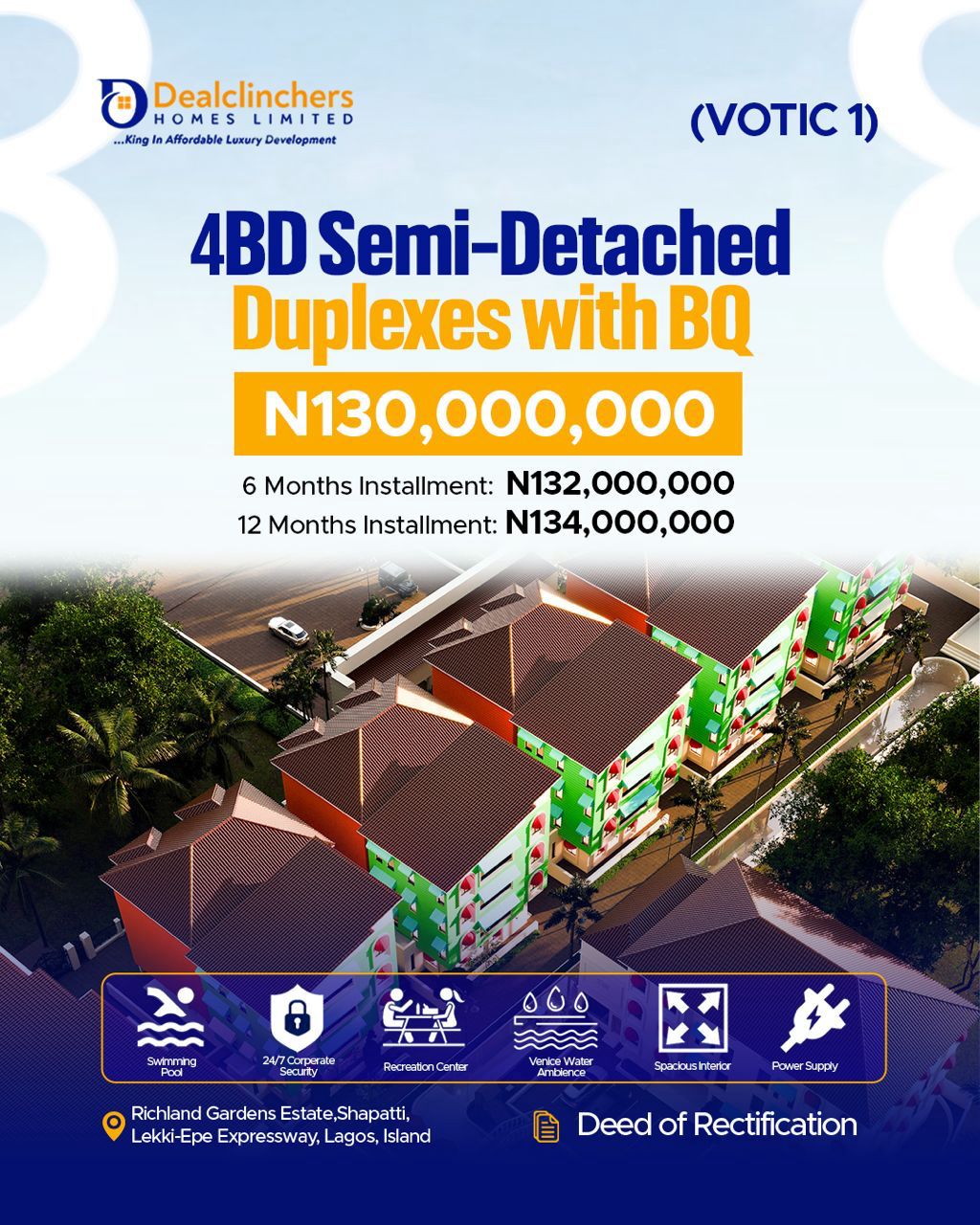 Address: Richland Gardens Estate, Shapatti, Lekki-Epe Expressway, Lagos, Island